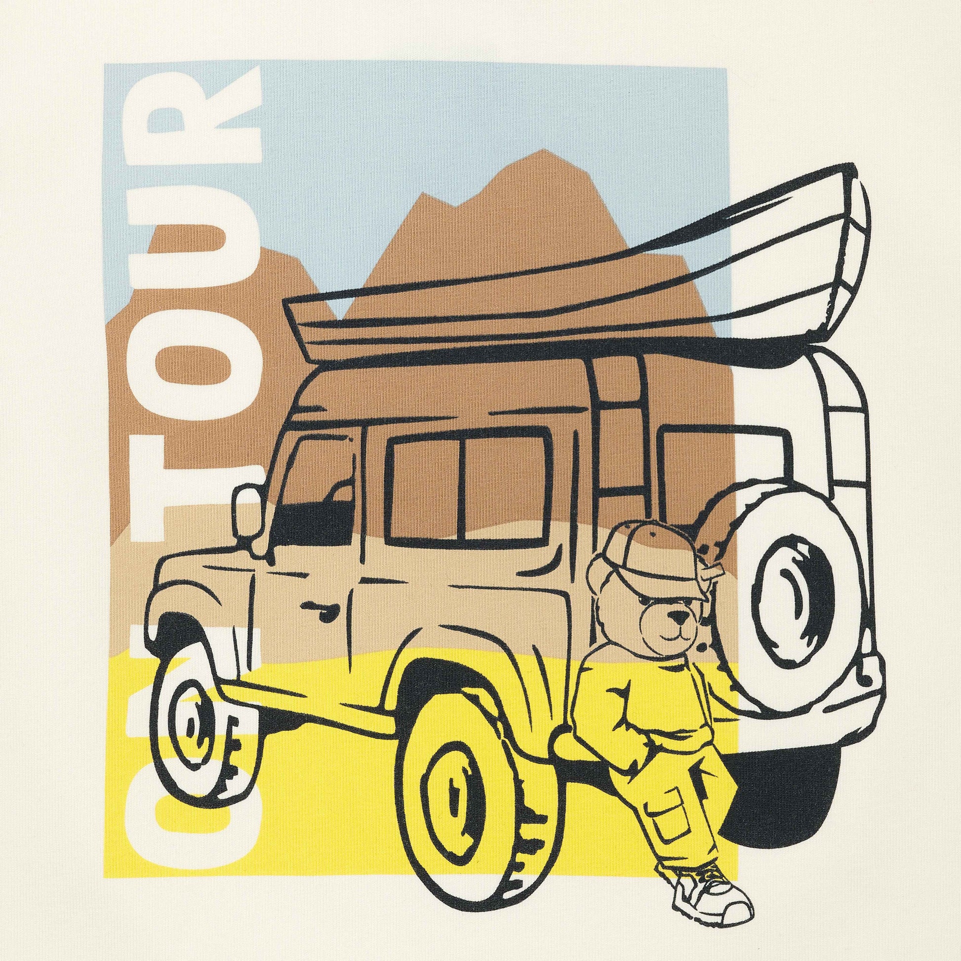 Kleine Abenteurer starten mit Ben und seinem Jeep in aufregende Fantasiewelten. Der weiche Single Jersey sorgt für angenehmen Tragekomfort, während der gerade Schnitt jede Bewegung mitmacht. Der kontrastfarbige, gerippte Rundhalsausschnitt mit sportlichen Streifen verleiht dem Shirt einen coolen Look. Auf der Vorderseite lädt ein detailreicher Print mit Jeep und Bergkulisse zum Träumen ein. Auf der Rückseite rundet das klassische Steiff Teddybärmotiv das Design charmant ab – ein lässiges Lieblingsstück für große Steiff Fans.