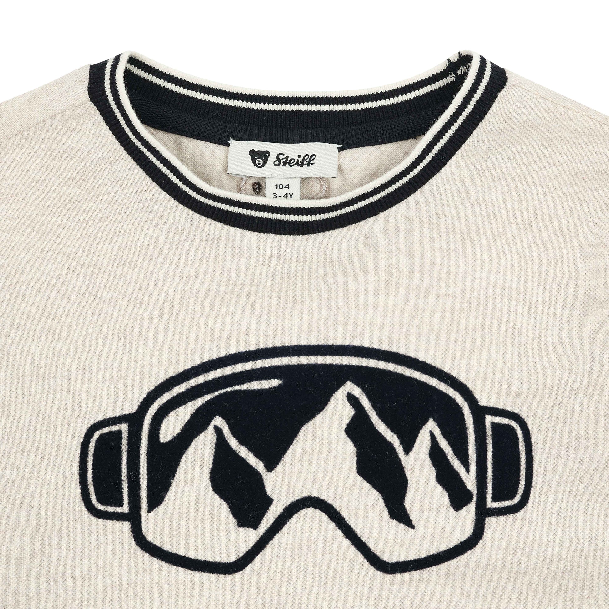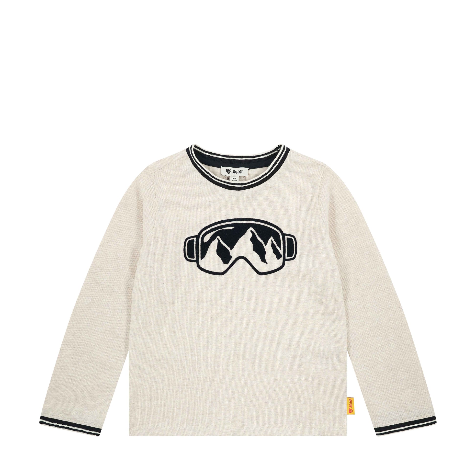 Kleine Winterfans sind mit diesem Langarmshirt bestens für winterliche Abenteuer gestylt. Der weiche Basic Piqué bietet angenehmen Tragekomfort und macht jede Bewegung mit. Streifen und der farbig abgesetzte, gerippte Rundhalsausschnitt setzen sportliche Akzente. Highlight ist der Print auf der Brust: eine Skibrille mit Bergpanorama, die sofort Lust auf Schnee und Spaß macht. Gerippte Ärmelbündchen sorgen für eine bequeme Passform. Auf der Rückseite rundet das klassische Steiff Teddybärmotiv das Outfit mit einem Gefühl von Geborgenheit ab. Bereit für den nächsten Abfahrtsspaß!