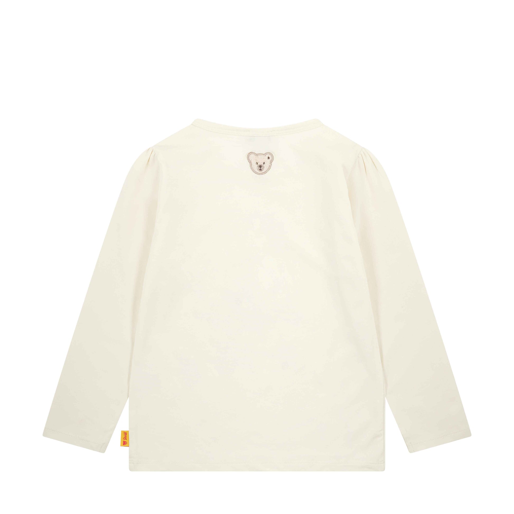 Ein gemütlicher Begleiter für kleine Fashionistas mit Sinn für liebevolle Details. Dieses Langarmshirt aus weichem Single Jersey bietet höchsten Tragekomfort und überzeugt in zartem Beige mit klassischem Rundhalsausschnitt. Die gerade Passform schenkt Bewegungsfreiheit beim Spielen und Entdecken. Auf der Vorderseite sorgt ein detailreich gestaltetes Motiv mit einem Teddybären, der eine Krone trägt, für festliche Stimmung. Auf der Rückseite verleiht das klassische Steiff Teddybärmotiv zusätzlich ein Gefühl von Geborgenheit – ein bezauberndes Lieblingsstück für viele schöne Momente.