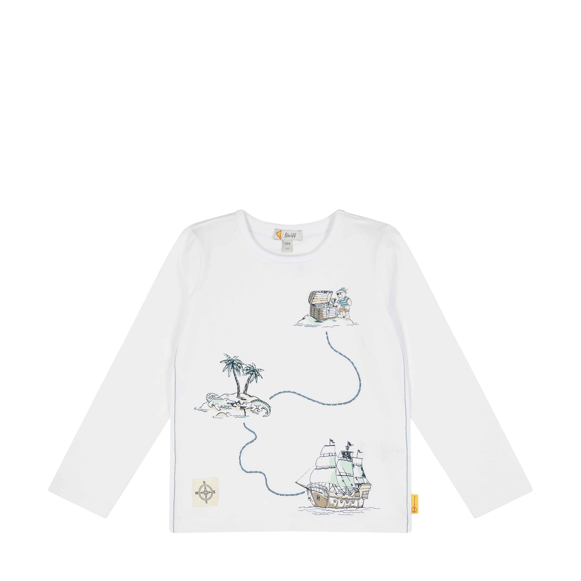 Unser Langarmshirt begeistert als Lieblings-Basic für alle Fälle. Leichter, herrlich weicher Jersey sorgt für ein perfektes Tragegefühl und wärmt angenehm. Flexible Abschlüsse ermöglichen unkompliziertes Hineinschlüpfen und Wohlfühlen. Eine aufgemalte Schatzkarte und ein Steiff Teddybärmotiv auf dem Rücken machen das Shirt zum Hingucker und wecken die Abenteuerlust Ihres Kleinen. Gute Laune für unterwegs!