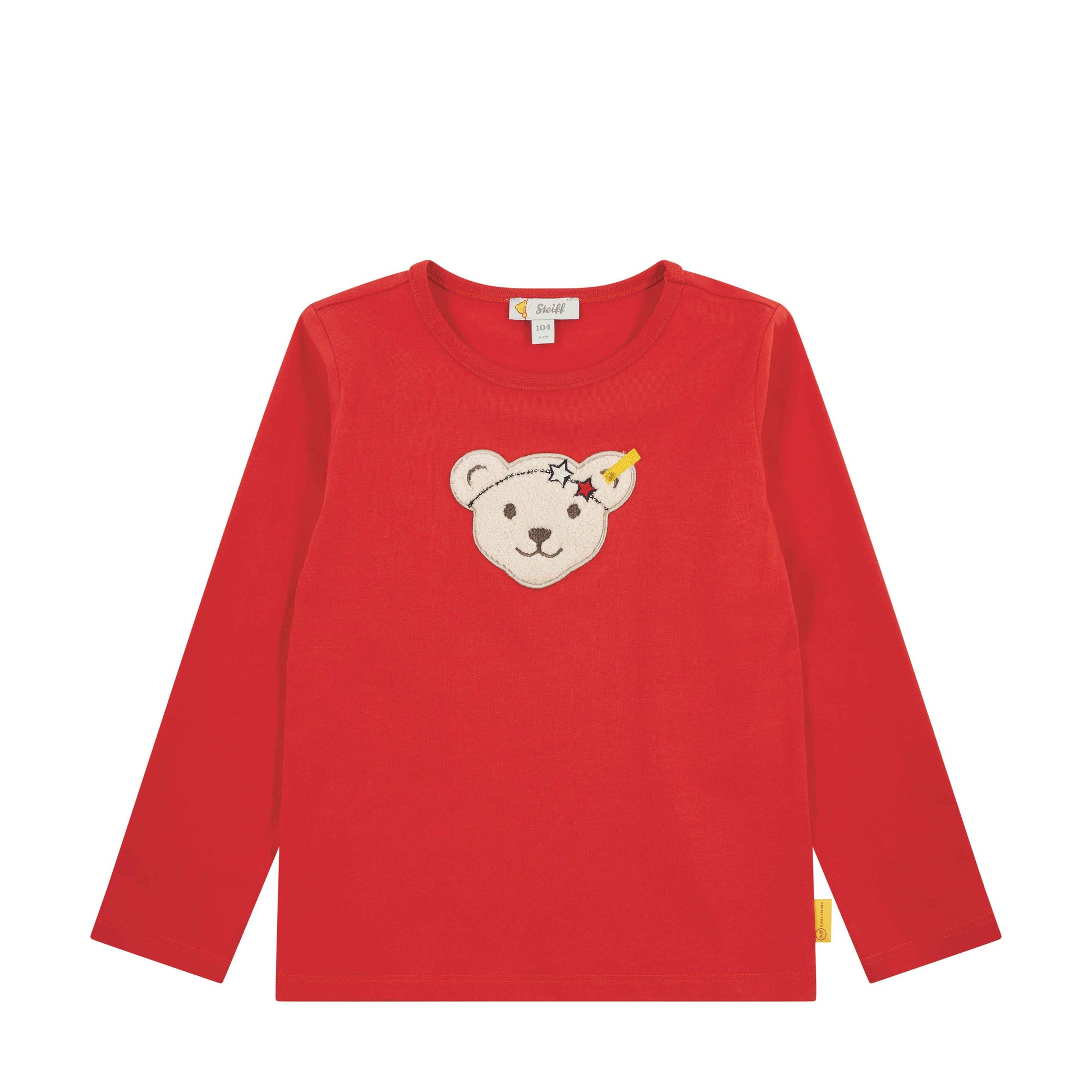 Unser Langarmshirt begeistert als Lieblings-Basic für alle Fälle. Leichter, herrlich weicher Jersey sorgt für ein perfektes Tragegefühl und wärmt angenehm. Flexible Abschlüsse ermöglichen unkompliziertes Hineinschlüpfen und Wohlfühlen. Ein großes, flauschiges Steiff Teddybärmotiv mit eingebautem Quietscher schmückt die Brustmitte. Das schöne und auffällige Rot lässt einen förmlich herausstechen und sorgt für gute Laune und Spaß im Alltag oder auch bei festlichen Anlässen. Auf ins Vergnügen!