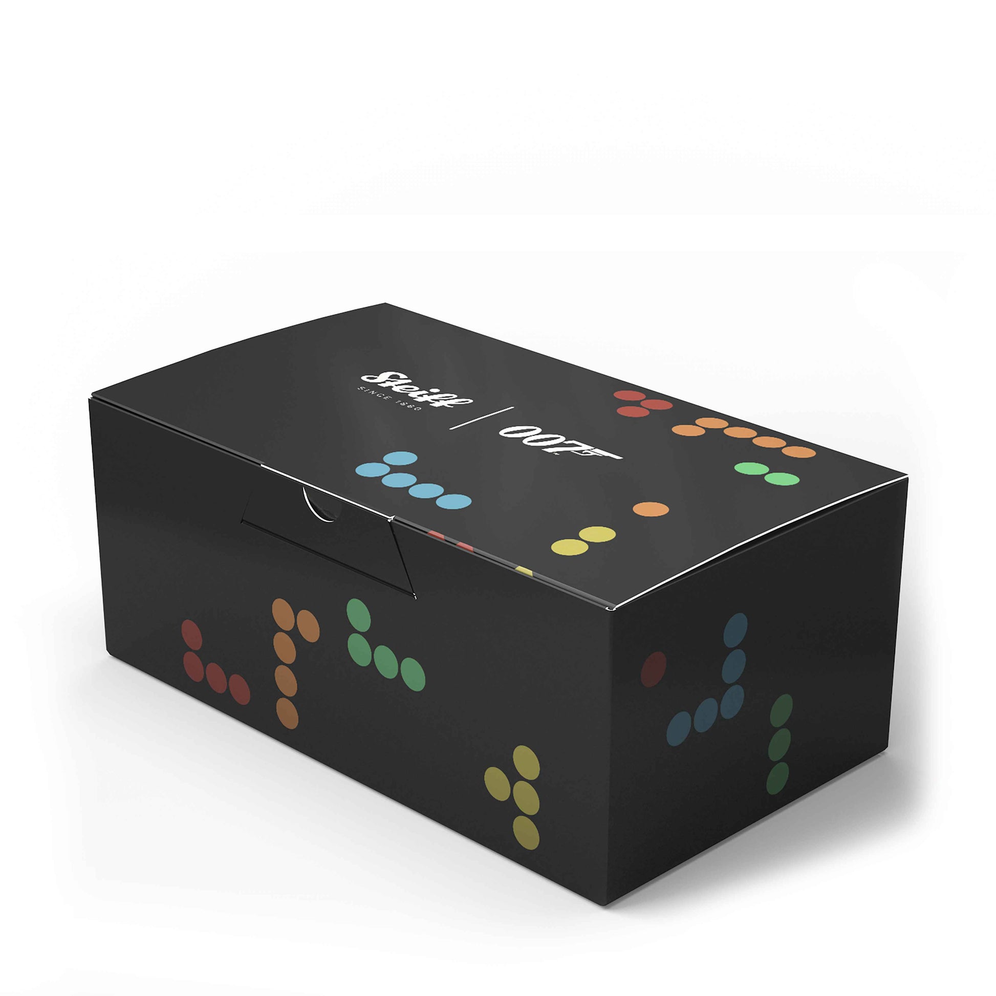 Bond, James Bond. Dieser einzigartige Teddybär mit Musikwerk spielt eine der bekanntesten Melodien der Welt, die kultige 007-Titelmelodie. Als echter Hauptdarsteller ist unser Bond-Bär in seinem Mohair-Sakko mit perfekt sitzender Fliege beeindruckend gekleidet. Seine linke Sohle ist in auffälligem Rot mit einem gestickten 007 und Dr. No-Logo als Hommage an den ersten Film der Serie (1962) verziert. © EMI United Partnership Ltd. o/b/o Norman Monty.
