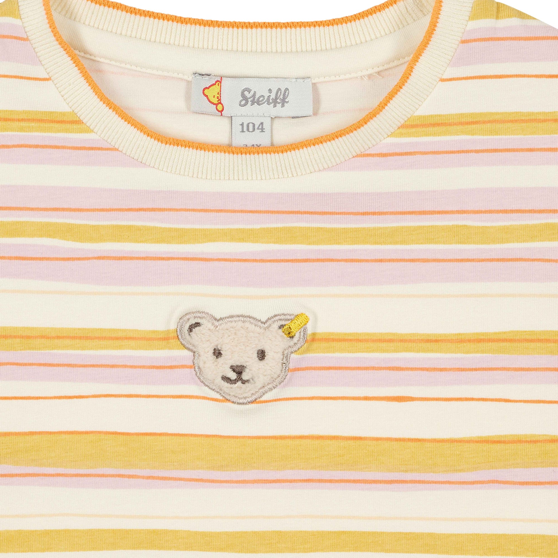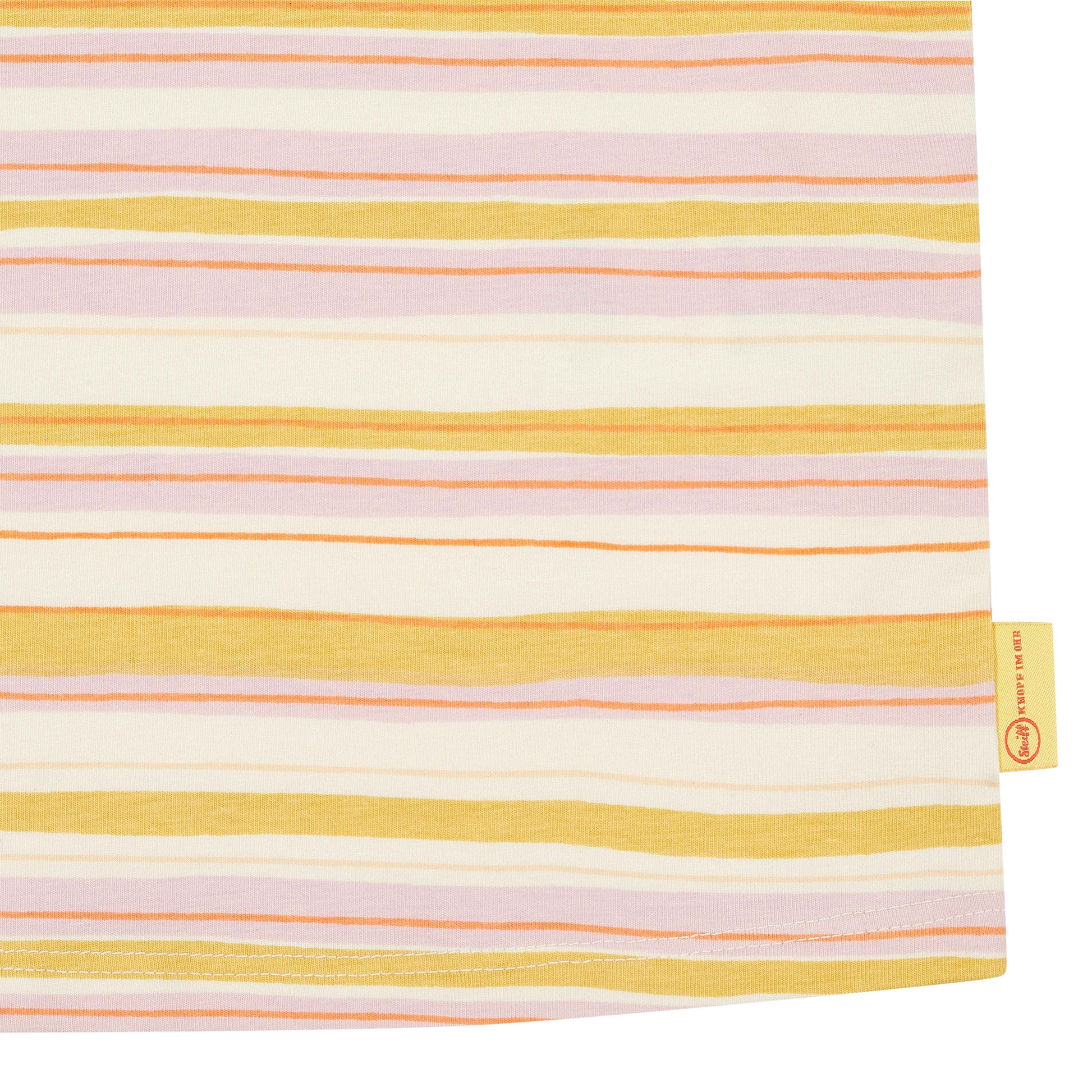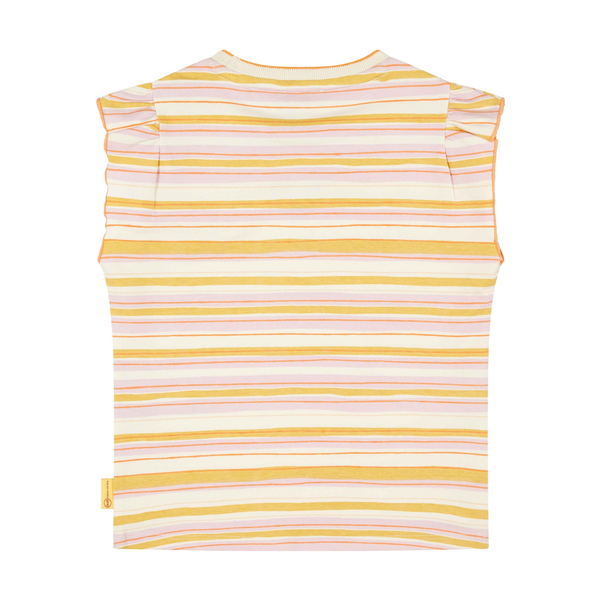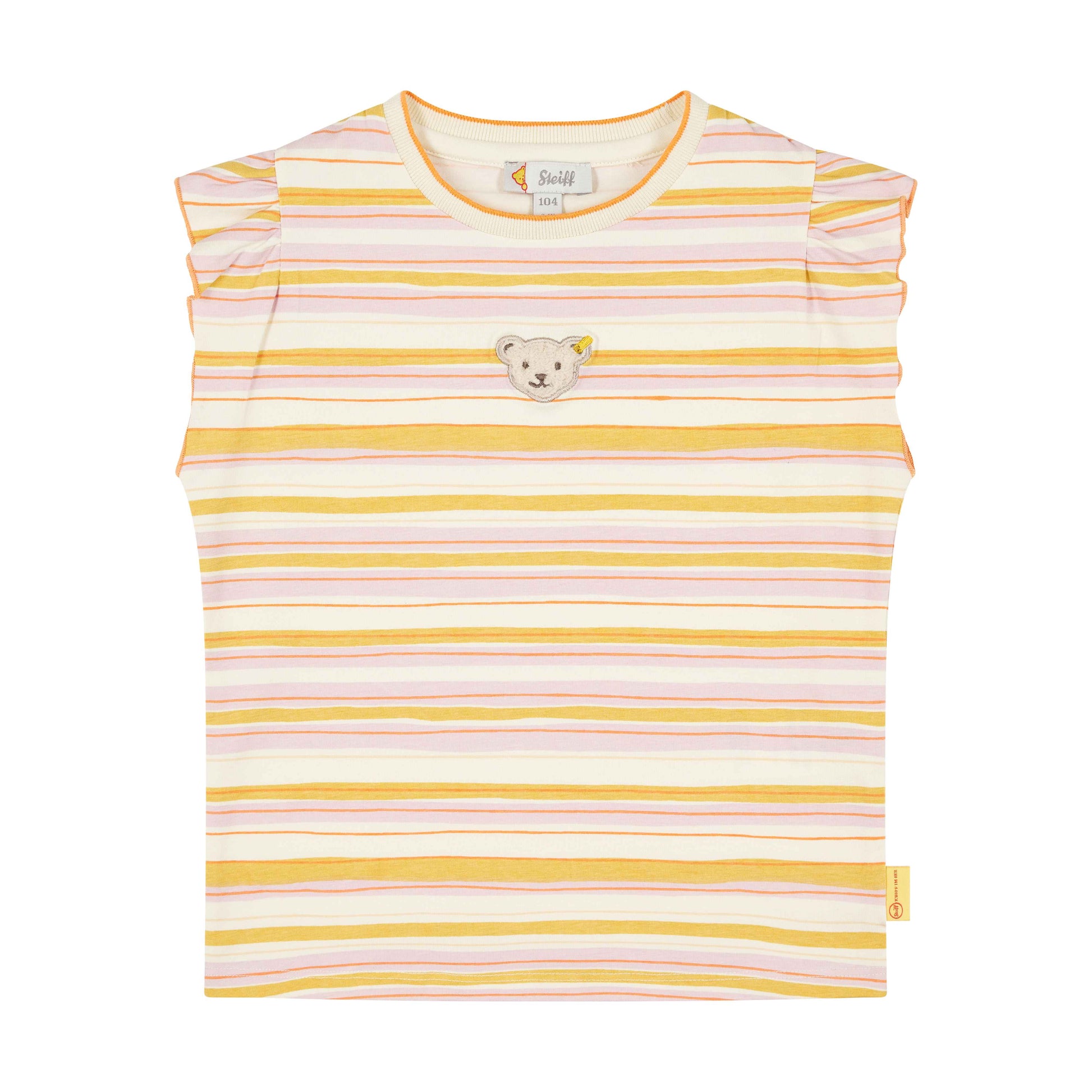 Bezauberndes Top im Streifenook für kleine Trendsetterinnen. Der weiche Single-Jersey in leuchtenden Rosa-, Gelb- und Orangetönen ist sanft zur Haut. Fältchen mit Rüschenabschluss an der Schulter sind nicht nur niedlich, sondern auch richtig chic!