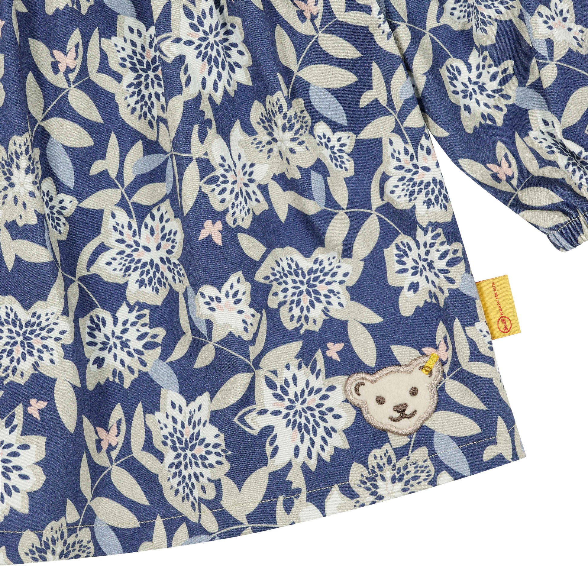 Mit dieser Tunika geht es perfekt gestylt zu den schönsten Anlässen. Der Reißverschluss am Rückenteil hilft beim Anziehen. Der verspielte Blusenkragen ist mit Rüschen abgesetzt. Weite, am Saum geraffte Ballonärmel sind ein weiterer Hingucker. Zarte Bundfalten geben dem ausgestellten Rockteil einen niedlichen Schwung. Für alle Fälle begleitet ein flauschiges Steiff Teddybärmotiv Ihre Kleine zu allen Unternehmungen. So romantisch!