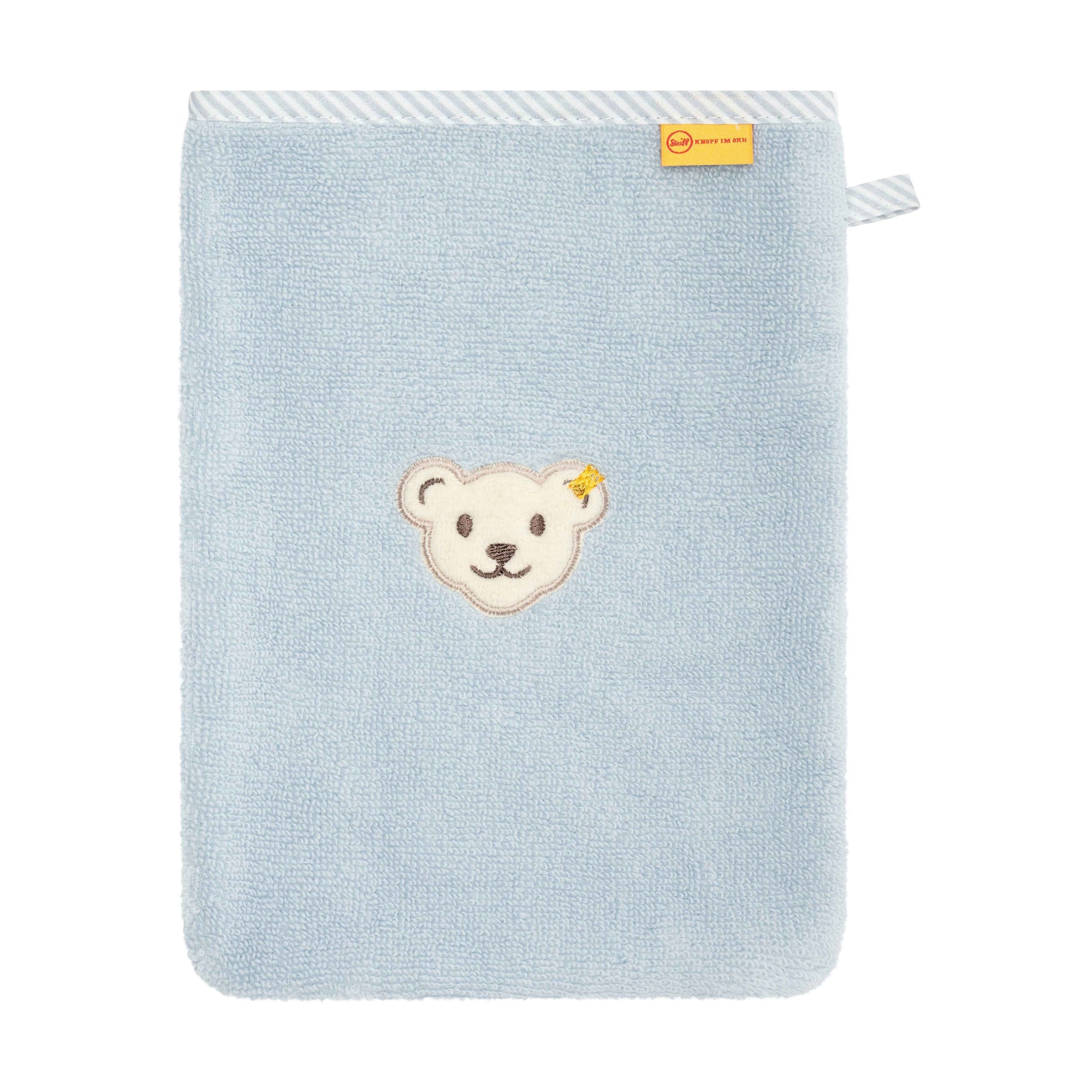 Mit diesem Waschlappen wird die Zeit im Badezimmer zum Vergnügen. Kuschelig-weicher Frottee reinigt und verwöhnt zarte Haut besonders angenehm. Als großzügiger Handschuh gearbeitet sorgt er an großen und kleinen Händen damit beim Waschen für Streicheleinheiten. Leicht und unkompliziert verstaubar kommt der Waschlappen zu Hause oder unterwegs zum Einsatz und beseitigt jedes Malheur im Handumdrehen. Zartes Hellblau passt als Klassiker in jedes Bad. Ein flauschiges Steiff Teddybärmotiv ist überall dabei. Das weiche Accessoire bereitet als Geschenk viel Freude.
