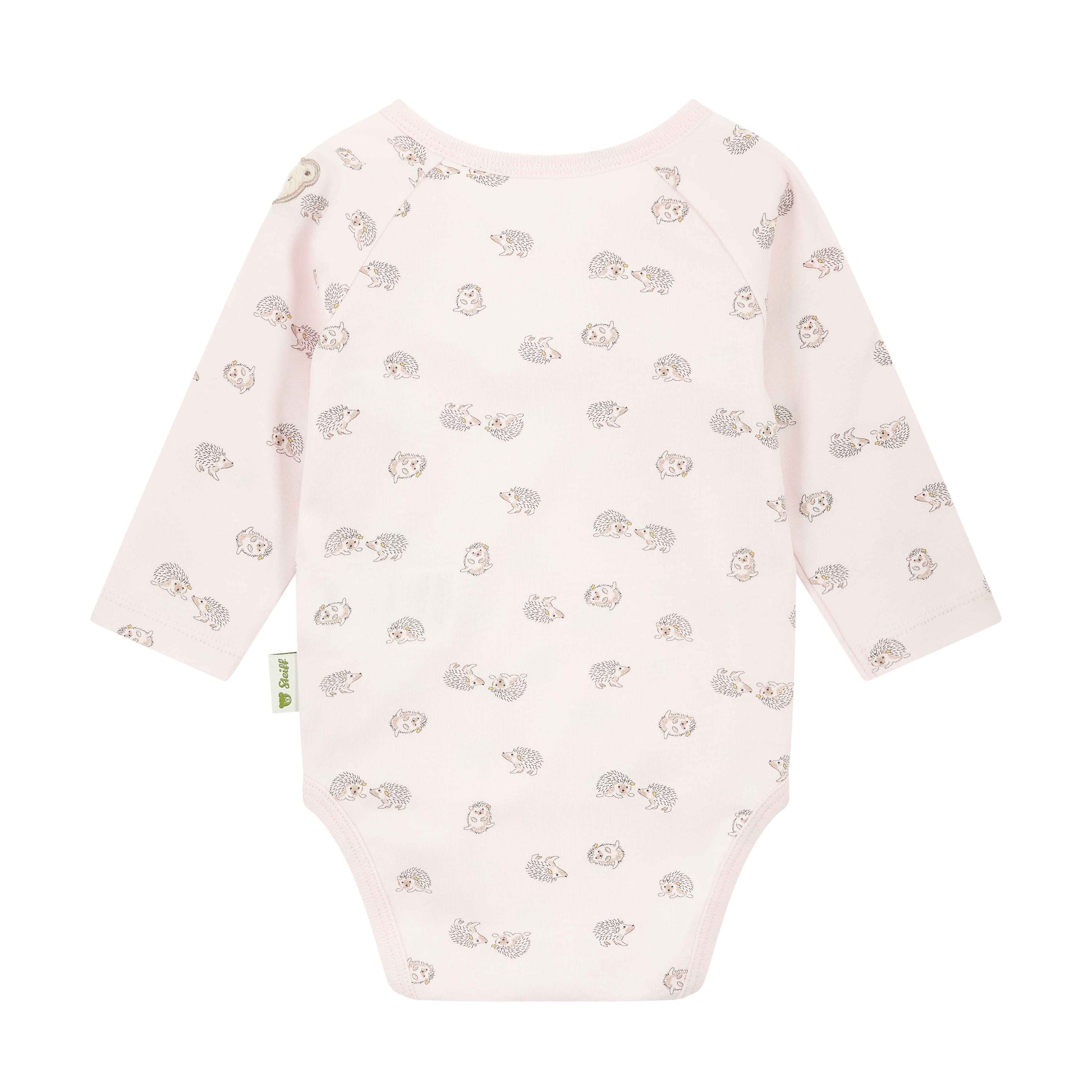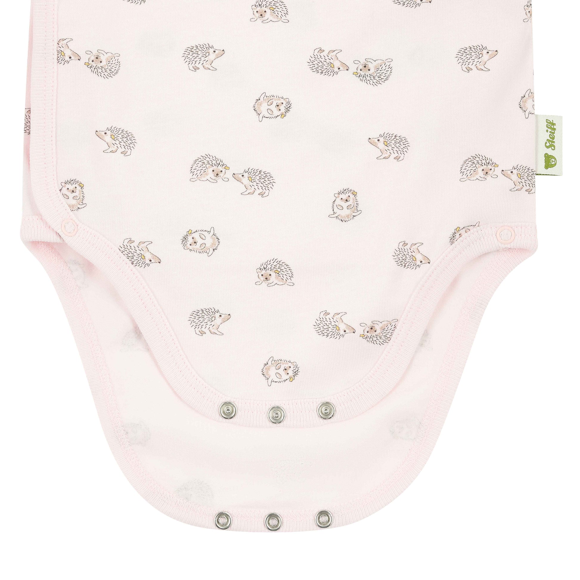 Weich, praktisch und einfach goldig – dieser langärmelige Wickelbody bietet komfortables Anziehen für kleine Weltentdecker und Weltentdeckerinnen. Der zarte Allover-Print mit kleinen Igeln sorgt für verspielte Akzente und macht den Body zu einem besonderen Hingucker im Alltag. Dank seitlicher Druckknopfleiste und Druckknöpfen im Schrittbereich gelingt das An- und Ausziehen kinderleicht. Hergestellt aus angenehmem Single Jersey, bietet der Body sanften Tragekomfort auf zarter Babyhaut. Auf dem Ärmel sorgt das klassische Steiff Teddybärmotiv für ein liebevolles Detail und ein Gefühl von Geborgenheit.