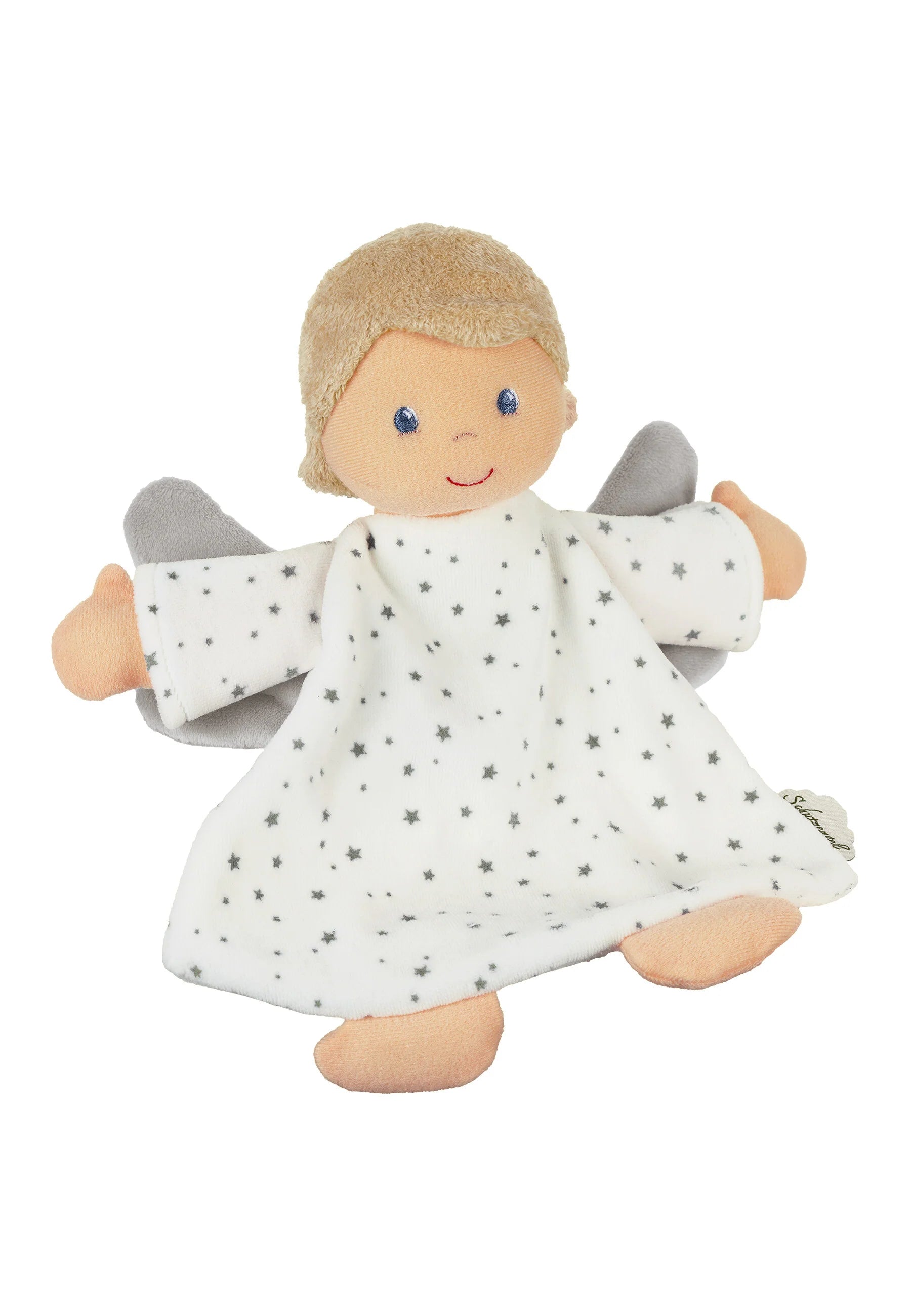 ☁️ Schmusetuch Schutzengel in Ecru & Grau – flauschiger Begleiter für kleine Engel