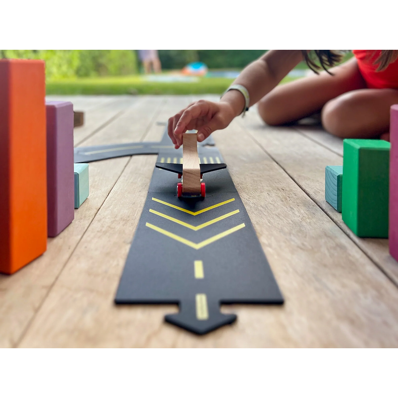 Das schlichte, zeitlose Design passt wunderbar zur waytoplay Welt und ergänzt Straßen, Flughäfen oder ganze Spielstädte. Robust gefertigt begleitet es kleine Pilot:innen durch viele kreative Spielmomente.