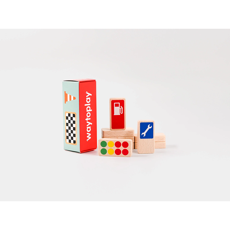 Die stabilen Holzschilder ergänzen die waytoplay Straße perfekt und bringen noch mehr Spannung ins freie Spiel. Ob Training, Qualifying oder großes Finale – hier bestimmt die Fantasie das Rennen.