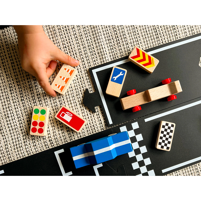 Mit diesen Rennstrecken-Schildern entstehen Startlinie, Boxenstopp und Zielgerade im Handumdrehen. Kinder starten Rennen, planen Überholmanöver und schicken ihre Autos Runde für Runde ins Abenteuer – jedes Spiel verläuft anders.