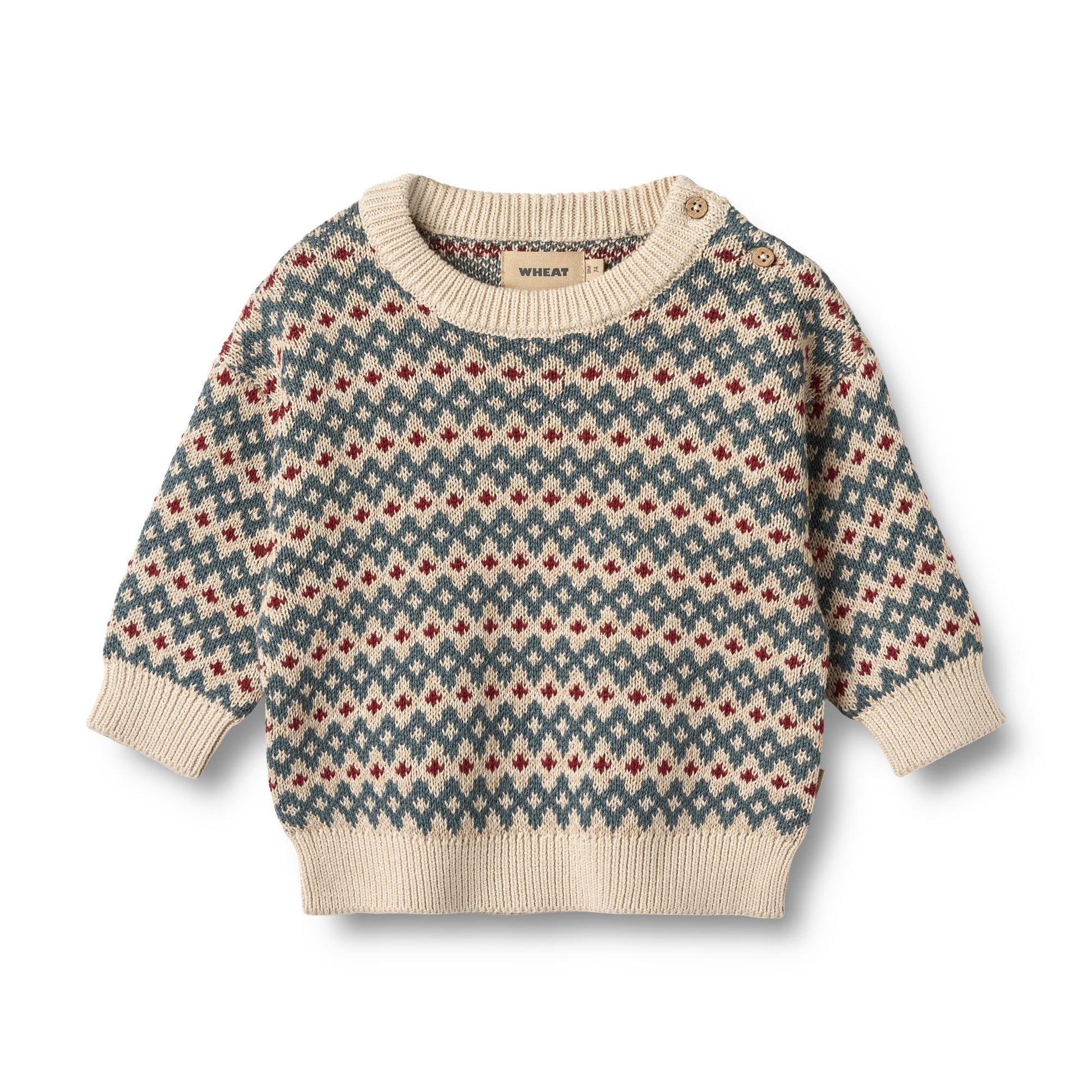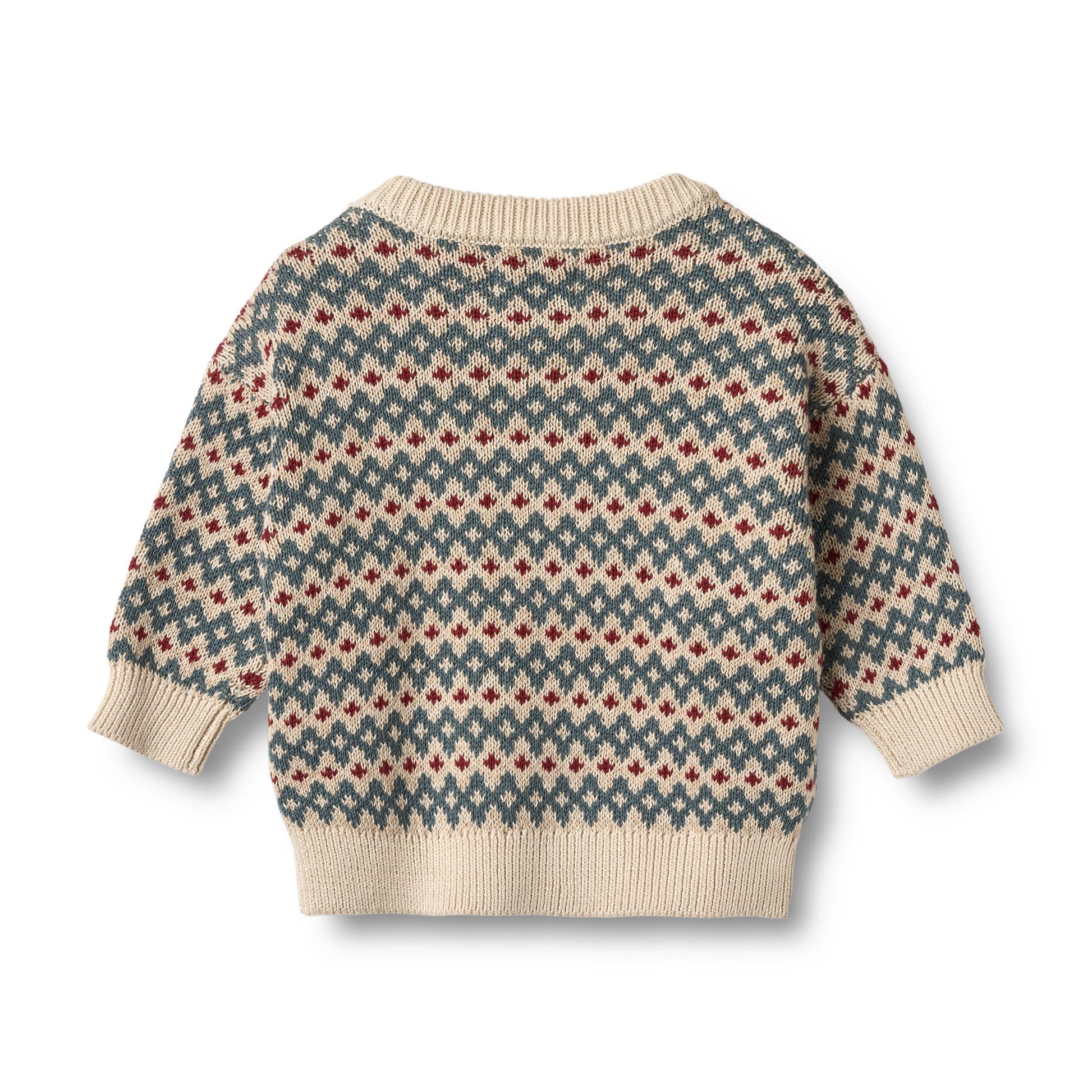 Wunderschöner gestrickter Jacquard-Pullover für Babys aus weicher Bio-Baumwolle. Der Pullover überzeugt durch seine hochwertige Verarbeitung und das klassische Allover-Muster. Dank des praktischen Knopfverschlusses an der Schulter lässt er sich ganz leicht an- und ausziehen.