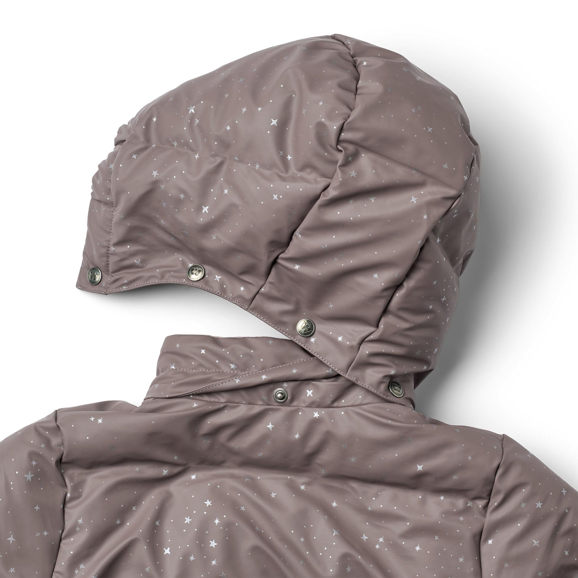 Die gefütterte Jacke „Coast“ von Wheat ist der ideale Begleiter für kalte Wintertage. Mit ihrem hübschen Allover-Sternenmuster auf sanftem Pflaumenton bringt sie nicht nur Wärme, sondern auch einen Hauch Magie in den Alltag. Die Jacke ist angenehm leicht, aber wunderbar isolierend – perfekt für kleine Abenteurerinnen.