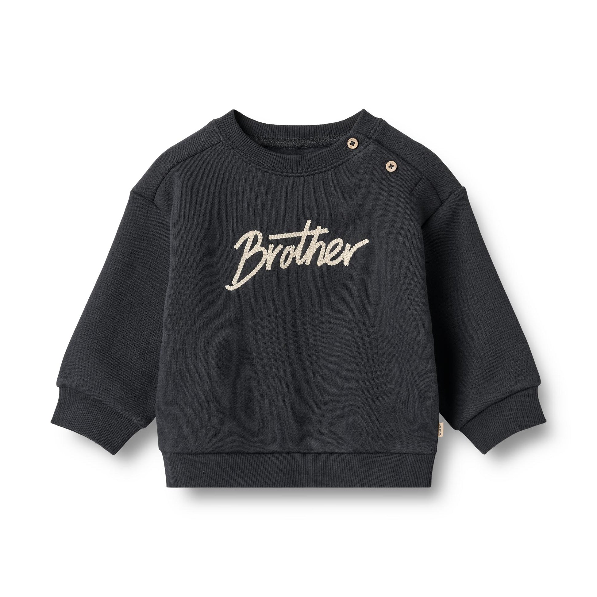 Dieses kuschelige Sweatshirt für Babys in dunklem Blau überzeugt mit einem coolen „Brother“-Schriftzug auf der Vorderseite.